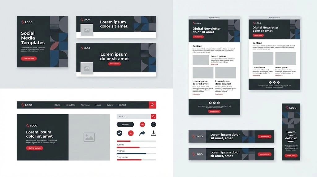 Colour palettes, typography, and visual styles that create consistency everywhere.